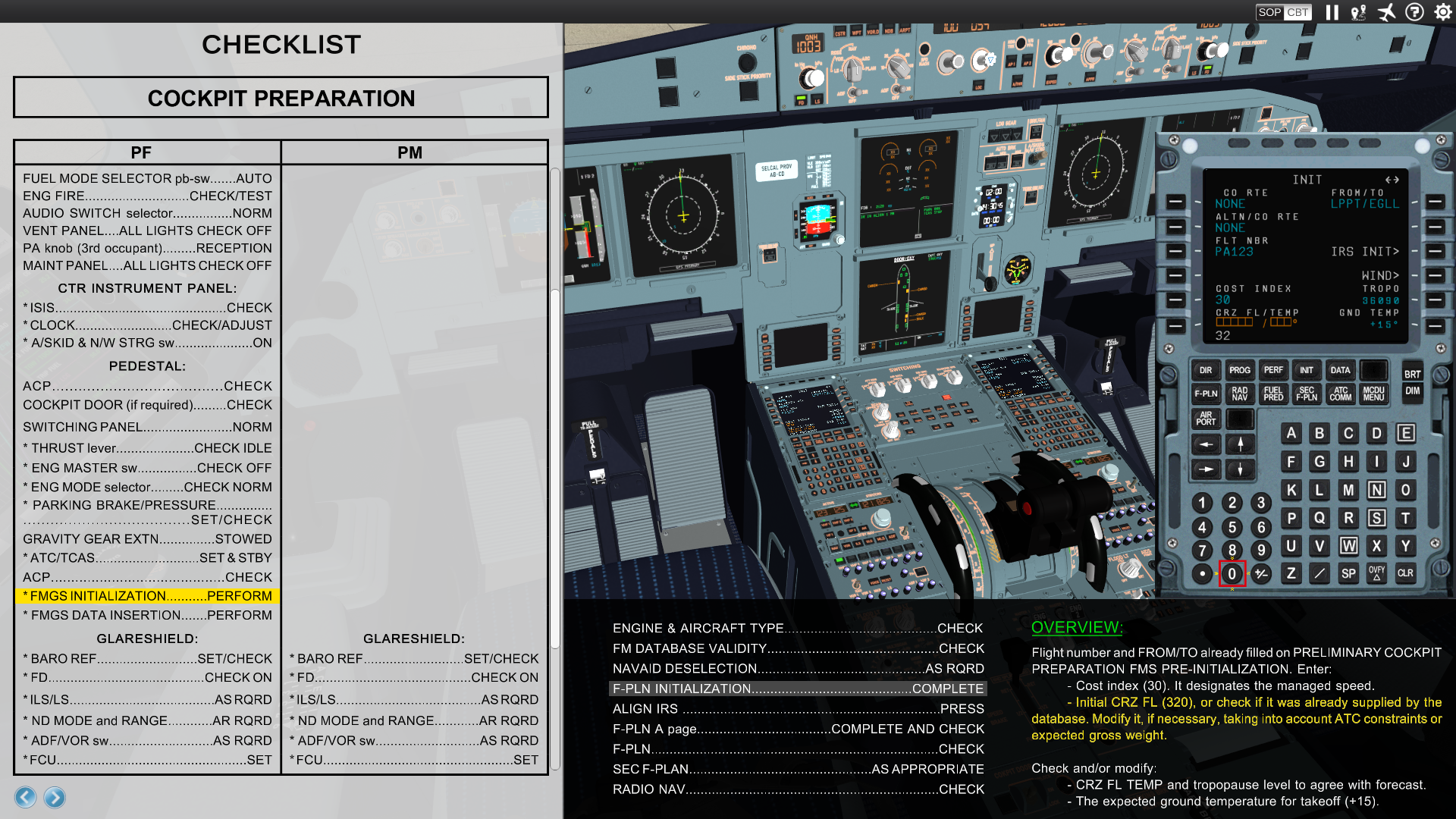 Cockpit SOP: Pilot Flying executing the cockpit preparation (click on the image to expand it)